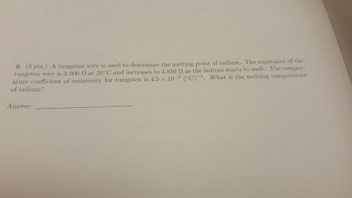 Solved A Tungsten Wire Is Used To Determine The Melting P Chegg Com - I've learned that it's nearly impossible to work with tungsten in a solid state, so how can i make it into a liquid state to work with?