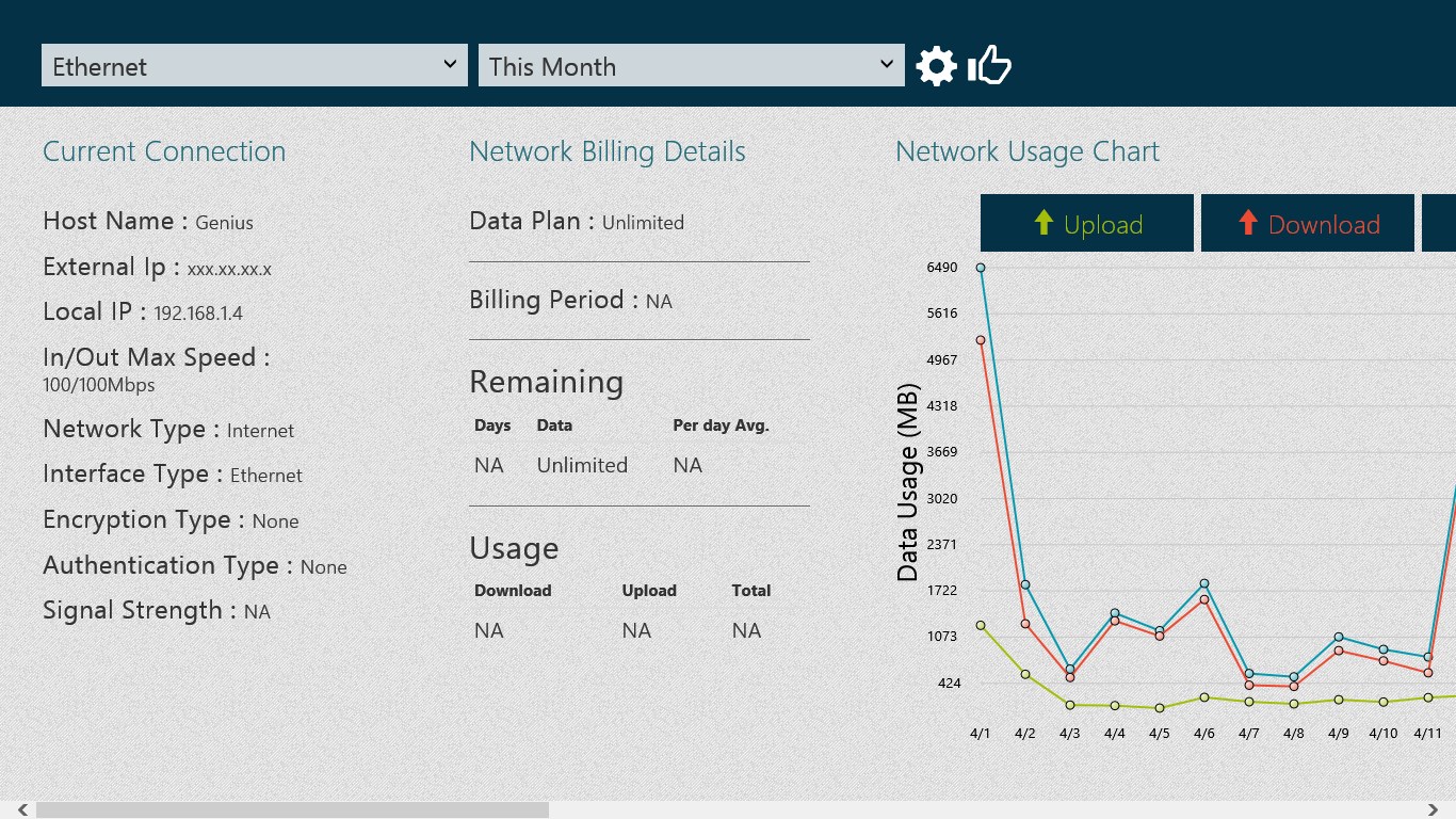 Networx Bandwidth Monitor Connection Speed Test Data Usage Log - Data usage for all the networks you connect is kept separate, allowing you to monitor each and every network data flow.