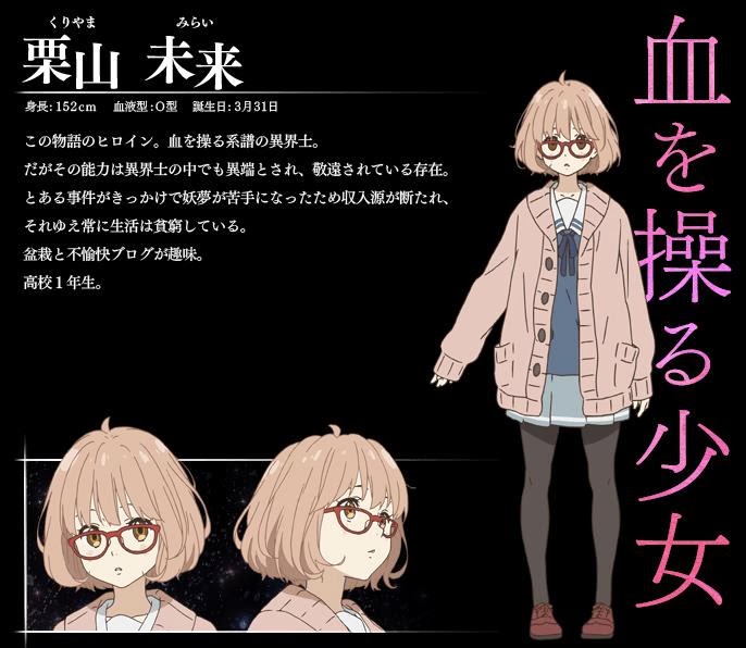 Kyoukai No Kanata Main Character / Mirai kuriyama is the sole survivor of a clan of spirit world warriors with the power to employ their blood as weapons.
